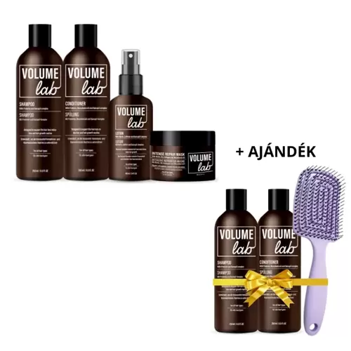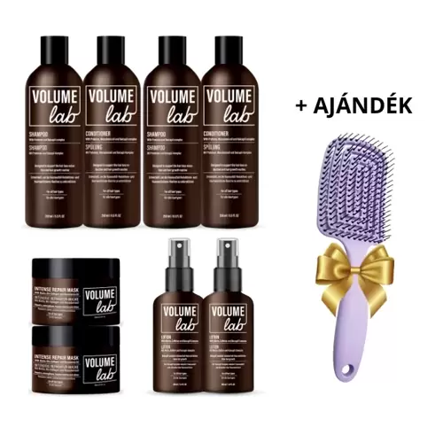A VOLUME LAB teljeskörű csomagja a legfontosabb elemekkel támogatja a hajat, külső vitaminként hatva..